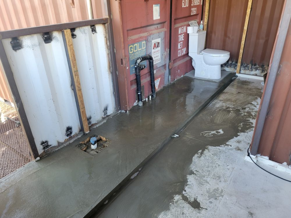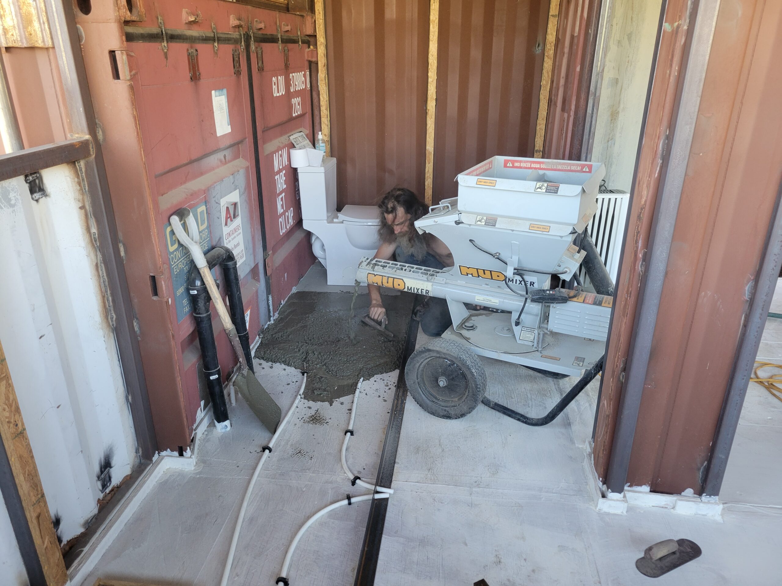 Laying down Pex tubing in the bedroom and bath then covering with 2 inches of concrete. We will heat and cool the entire house using this system. Eventually tile will be laid over the concrete.